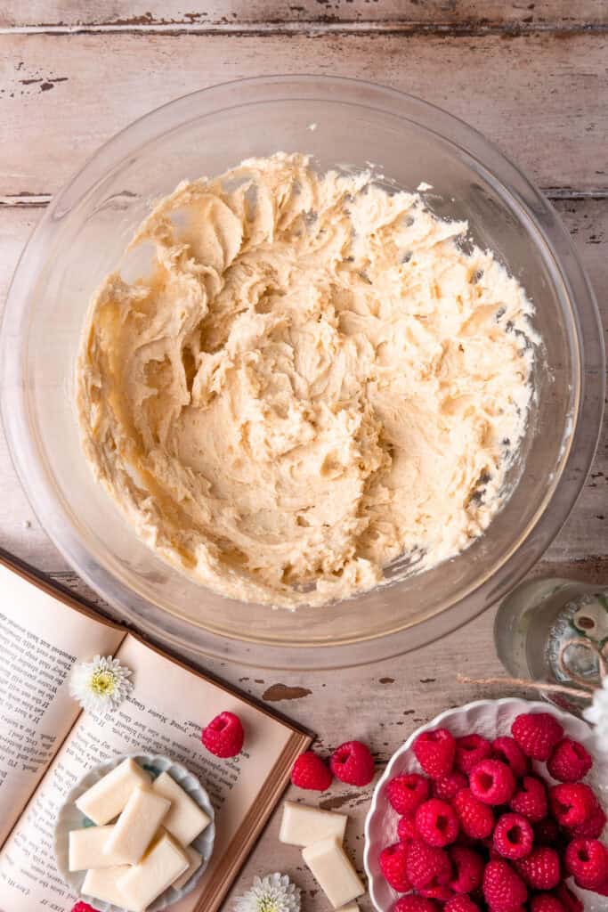 - Add in the melted and slightly cooled white chocolate and mix on medium speed until fully combined. (Make sure the white chocolate isn’t too hot. If it is, it can cause the cream cheese to separate. If this happens, let the mixture cool a bit and then mix, and it should pull together into a smooth mixture again.)4 oz (113 g) white chocolate bar, melted and slightly cooled
